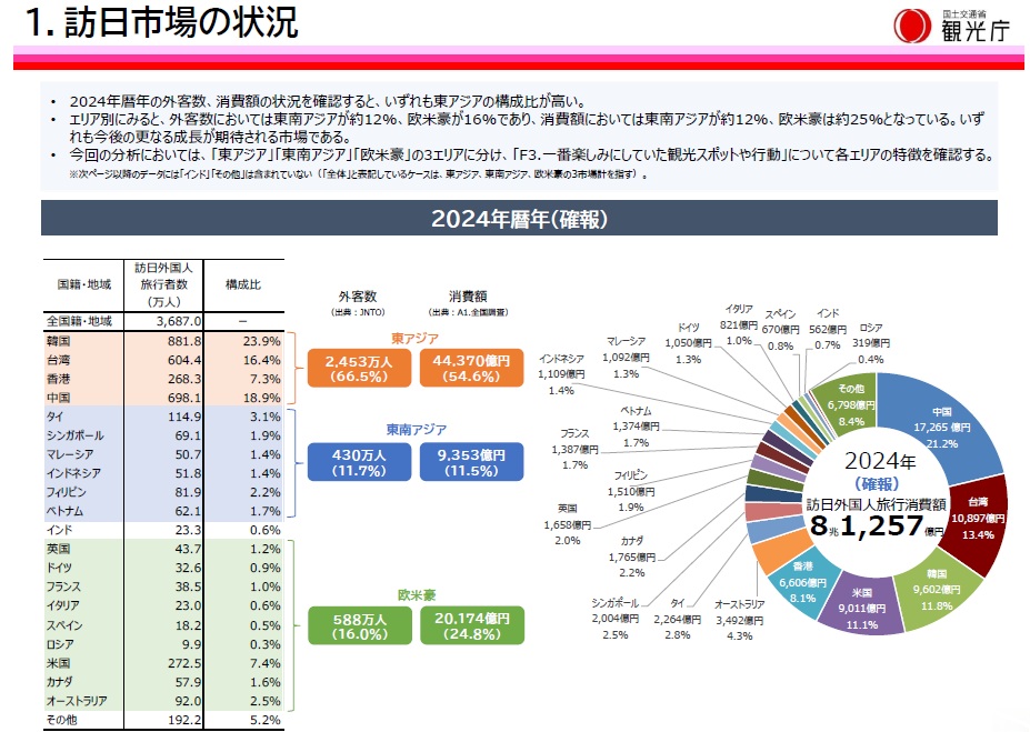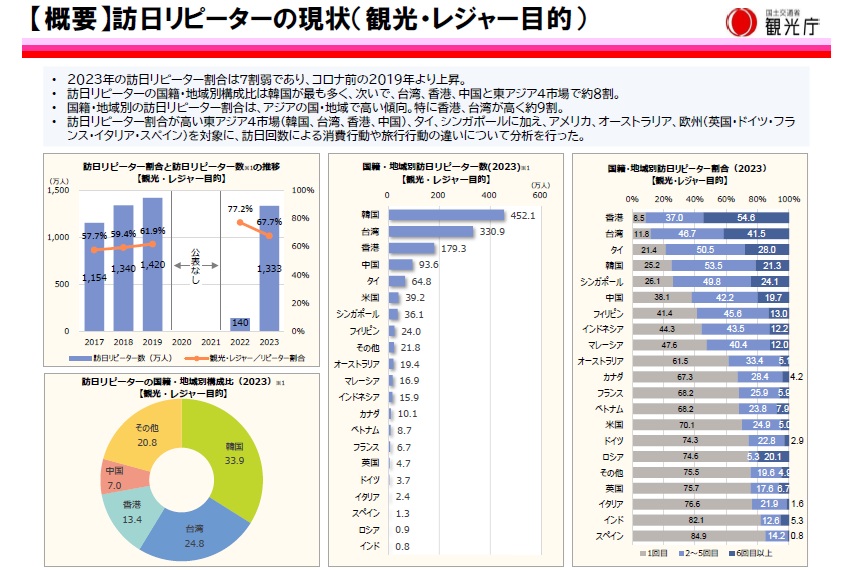 日本政府観光庁では、訪日外国人旅行者を対象に、インバウンド動向調査を実施し、分析結果を公表しています。